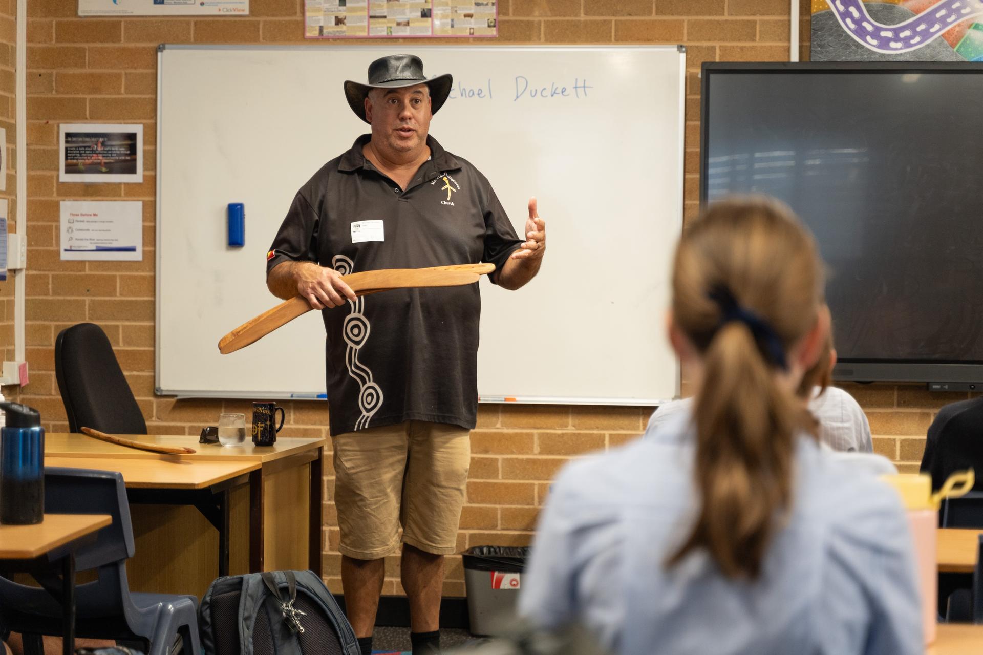 Recently the Year 10 Drama class had the privilege of joining the Year 11 Studies of Religion students to welcome Reverend Michael Duckett, the first Director of Indigenous Ministry in the Sydney Diocese (Anglican). It was an honour to hear Michael share his personal story and Christian journey with such authenticity and generosity.