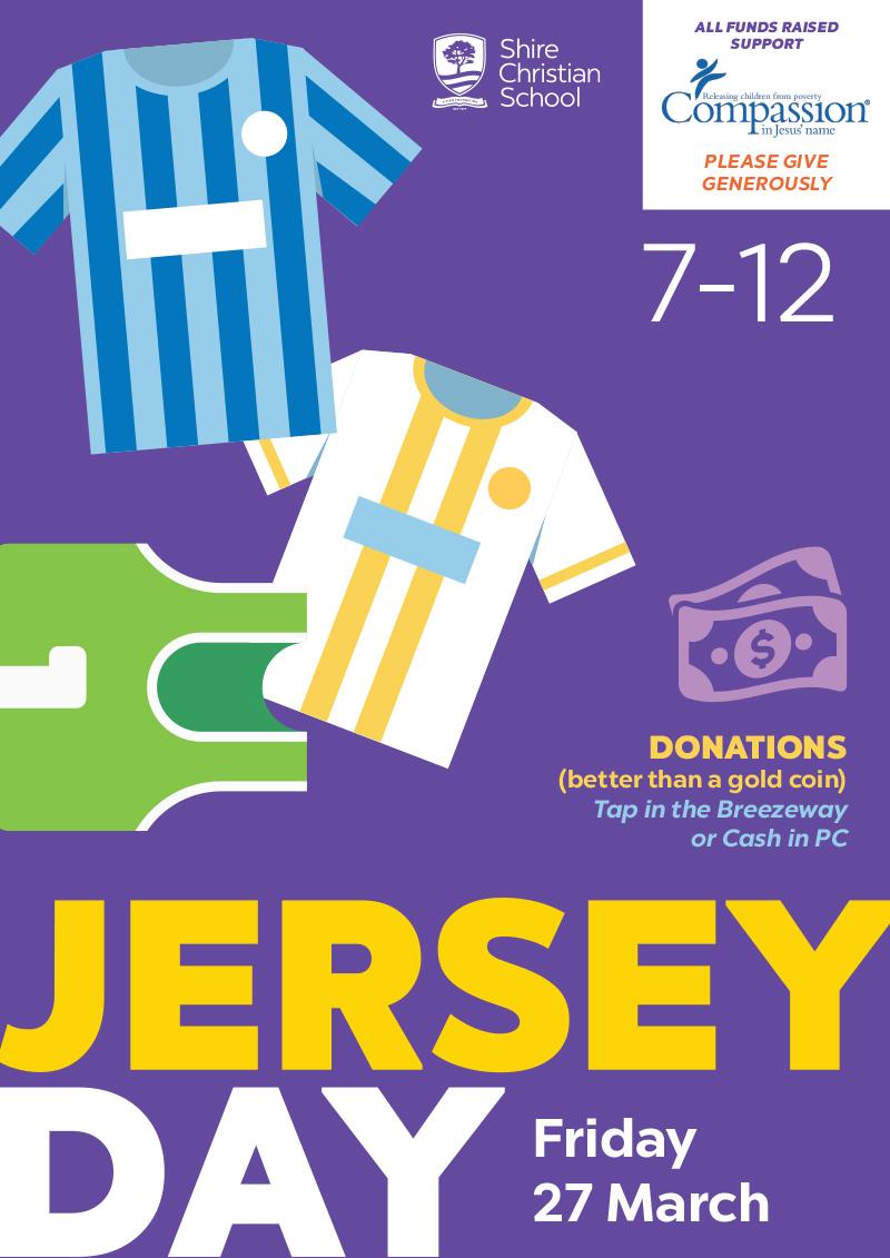 On Friday 27 March we will be having a Jersey fundraising day. The money from this will be used to fund the three Compassion Children we support as a school. I am encouraging students to be generous with this event since it is such a worthwhile cause.
