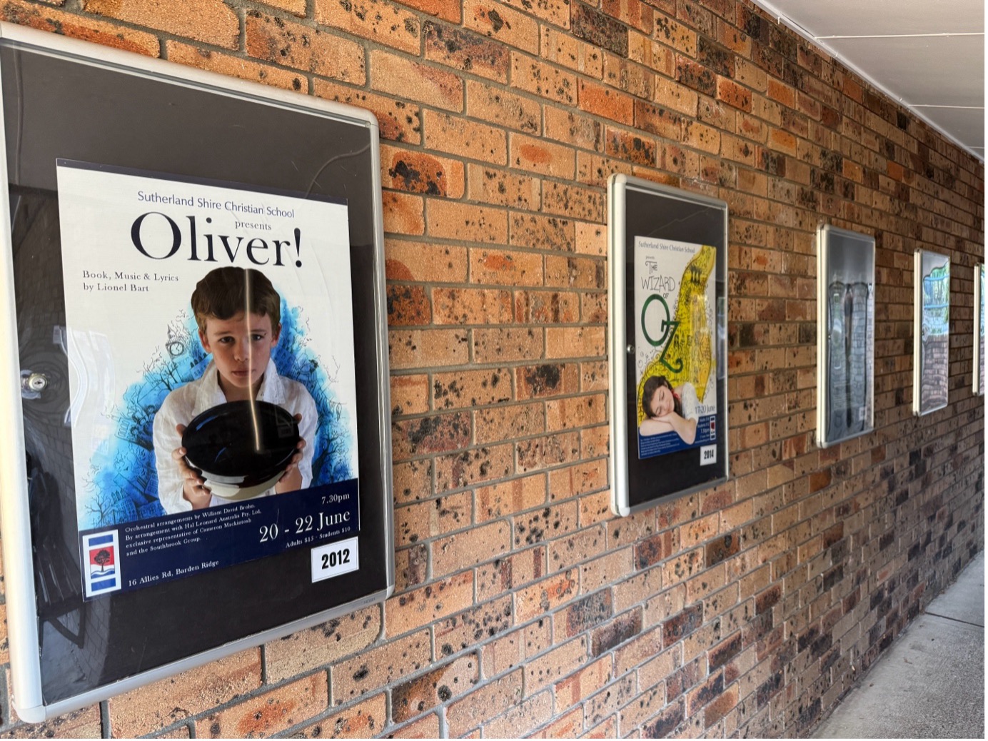 Our school site is intersected by a single straight walkway from the front to the back, ending near the school hall. At the very end is a short tunnel lined with posters of every musical performed over the past decade and a half.